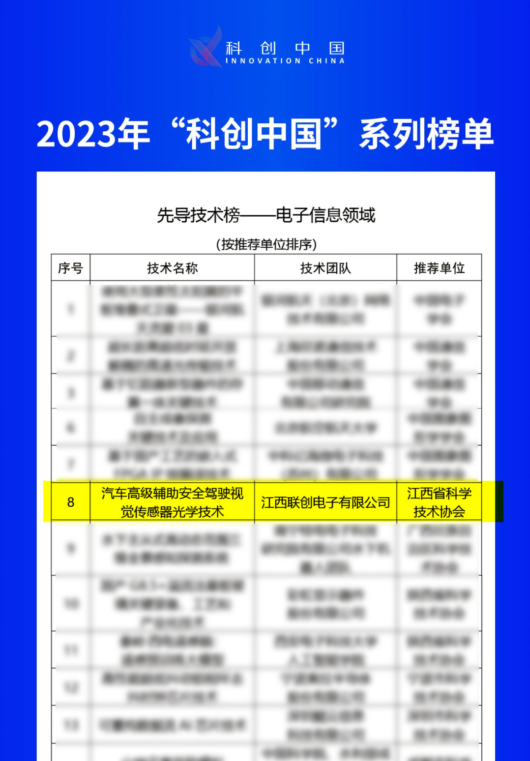 近日,中国科学技术协会公布了2023年度“科创中国”系列榜单遴选结果,杏彩注册,杏彩体育平台网页版注册官网的“汽车高级辅助安全驾驶视觉传感器光学技术”成功入选电子信息领域先导技术榜。
